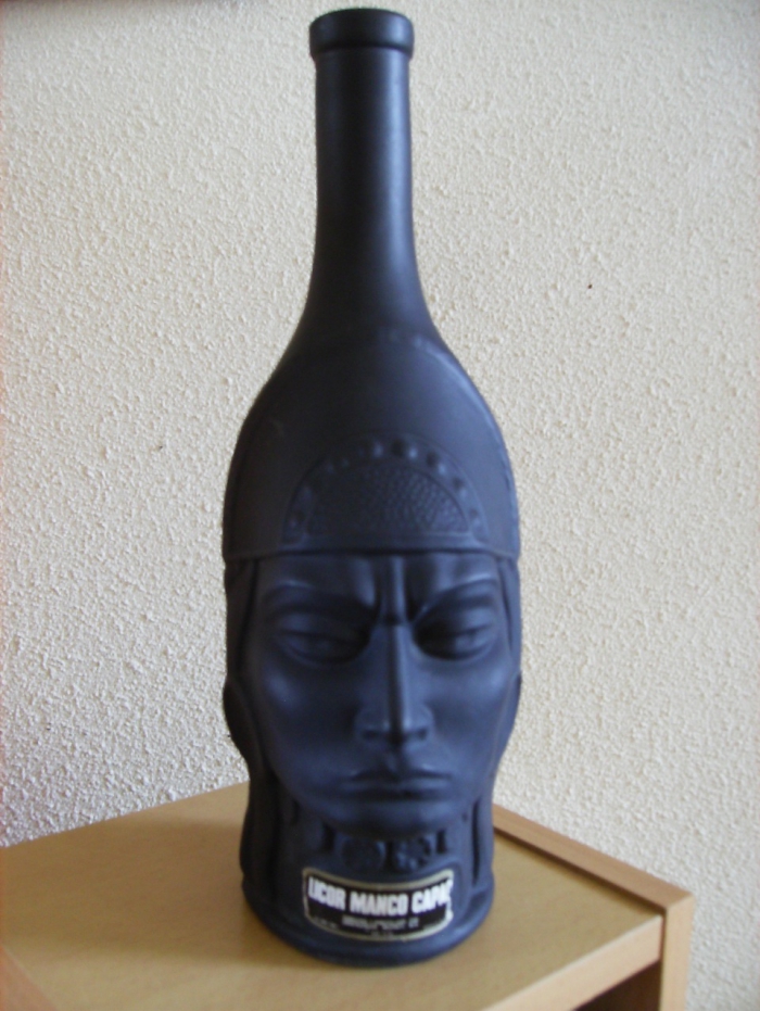 Een oude Spaanse drank fles, in de vorm van het hoofd van Manco Capac,