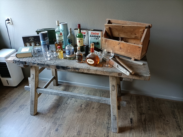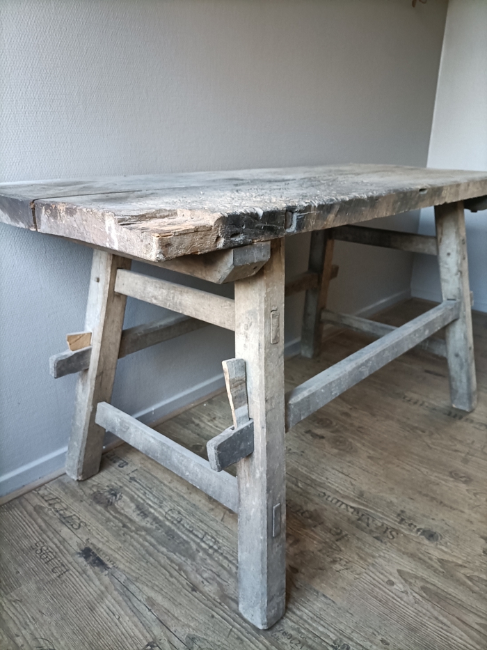 Zeer mooie oude brocante werkbank LxBxH 144x60,5x73,5 Poten kunnen ingeklapt worden. Bieden mag