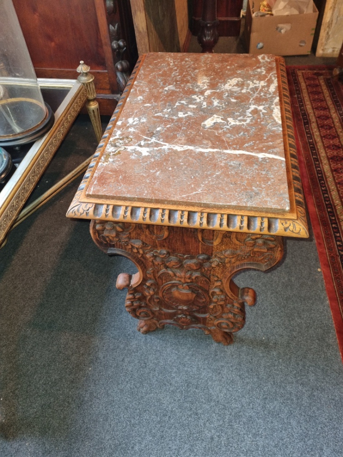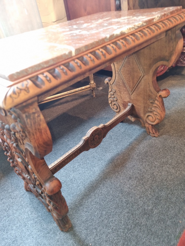 In zeer goede staat afm. hout 75op45 en 58cm hoog afm. marmer 37,5cm op 63cm vrijblijvend te bezichtigen na afspraak +475531024 Geen verzending of koeriers